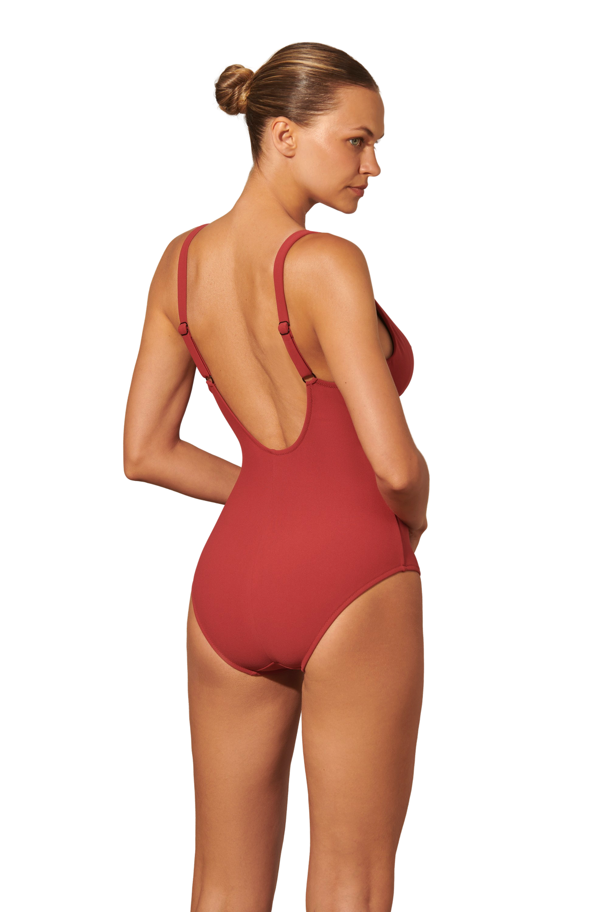 Este bañador de forma básica con escote en pico y copas suaves se pone de maravilla y se adapta perfectamente al cuerpo. Lleva una pequeña goma justo debajo del pecho que aporta mayor sujeción. Los tirantes son regulables y la espalda es abierta por lo que es muy cómodo y práctico. Un bañador liso es un fondo de armario que no puede faltar.