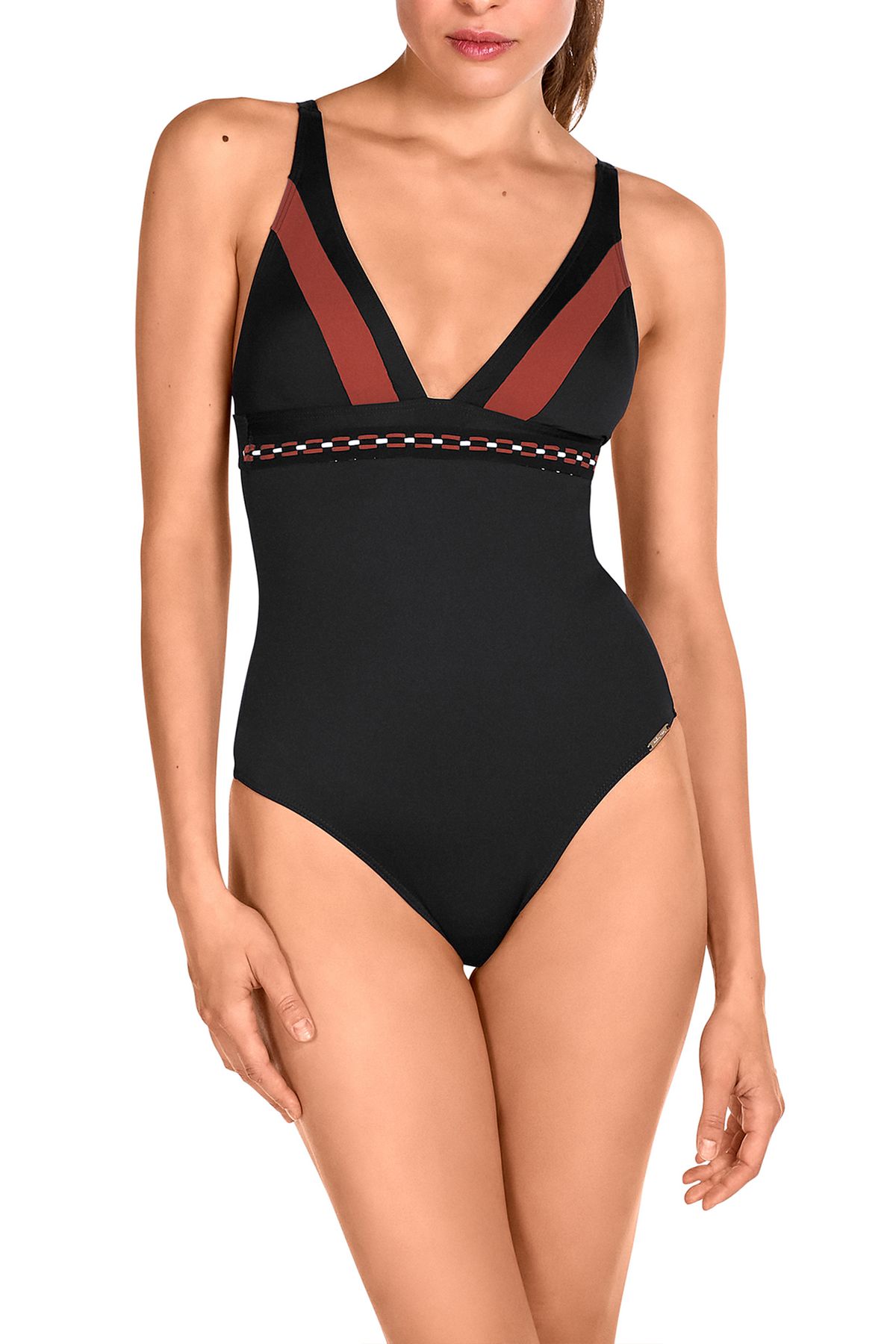 Un bañador práctico y muy cómodo. Es el típico traje de baño que no querrás quitarte y al que le sacarás mucho partido, tener un bañador negro es indispensable en nuestro armario de verano. Lleva copas suaves extraíbles y una pequeña goma justo debajo del pecho que te aportará una mayor sujeción, el escote es en pico por lo que estiliza y favorece la figura.