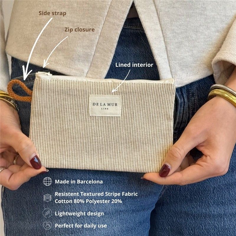 Mini Neceser Práctico, Bonito y Multiusos! Si eres de las que necesitan tenerlo todo organizado (pero con estilo), este mini neceser te va a conquistar. Compacto y resistente, está confeccionado en tejido fino con relieve de alta calidad, su textura aporta estructura y durabilidad. CREMALLERA SEGURA Y MINI ASA LATERAL. Incluye cremallera superior resistente para mantener tus cosas bien protegidas y una pequeña asa lateral que facilita sacarlo cómodamente del bolso. Práctico y funcional, como nos gusta. MULTIUSOS PARA TODO. Este mini neceser es ideal para llevar cualquier cosita y mantener tu bolso ordenado, como pintalabios, tiritas, pastillas, etc. FÁCIL DE LAVAR. Es fácil de limpiar, pensado para acompañarte a todas partes sin complicaciones. CONFECCIONADO EN ESPAÑA. Elaborado con telas nacionales y fabricación en España, apostando por la calidad, el cuidado en los detalles y la producción responsable.