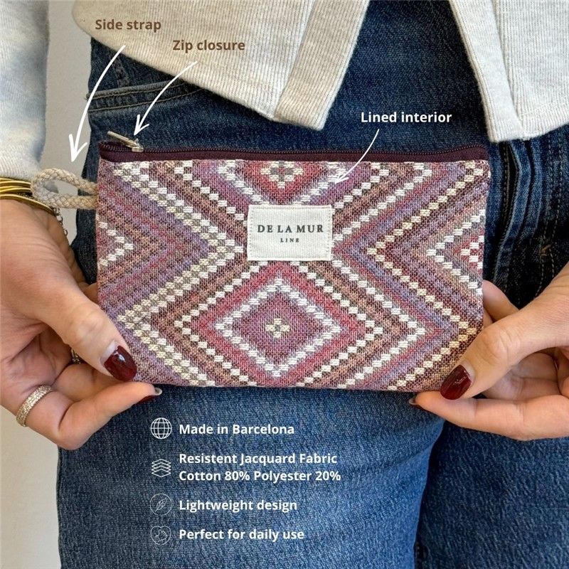 Mini Neceser Práctico, Bonito y Multiusos! Si eres de las que necesitan tenerlo todo organizado (pero con estilo), este mini neceser te va a conquistar. Compacto y resistente, está confeccionado en tejido jacquard de alta calidad, su textura gruesa aporta estructura y durabilidad. CREMALLERA SEGURA Y MINI ASA LATERAL. Incluye cremallera superior resistente para mantener tus cosas bien protegidas y una pequeña asa lateral que facilita sacarlo cómodamente del bolso. Práctico y funcional, como nos gusta. MULTIUSOS PARA TODO. Este mini neceser es ideal para llevar cualquier cosita y mantener tu bolso ordenado, como pintalabios, tiritas, pastillas, etc. FÁCIL DE LAVAR. Es fácil de limpiar, pensado para acompañarte a todas partes sin complicaciones. CONFECCIONADO EN ESPAÑA. Elaborado con telas nacionales y fabricación en España, apostando por la calidad, el cuidado en los detalles y la producción responsable.