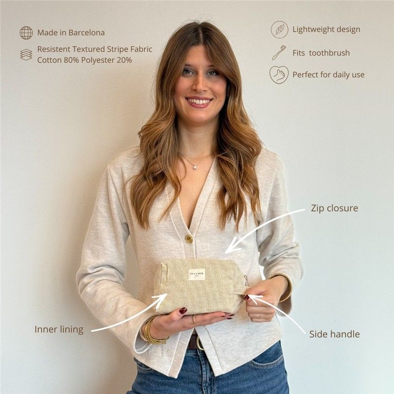 ¿Buscas el neceser perfecto para acompañarte en tu día a día? ¡Lo acabas de encontrar!Este neceser mediano combina diseño, calidad y funcionalidad para que lleves todo lo que necesitas. Gracias a su formato práctico y su asa lateral, podrás llevarlo cómodamente en la mano o dentro del bolso, mochila o maleta. Está confeccionado en tejido fino con relieve de alta calidad, su textura aporta estructura y durabilidad. El estampado a RAYAS en tono MOSTAZA, combina con todo y añade ese toque alegre que transforma cualquier bolso. CREMALLERA SEGURA Y ASA LATERAL. Incluye cremallera superior resistente para mantener tus cosas bien protegidas y una asa lateral que facilita llevarlo en la mano o sacarlo cómodamente del bolso o maleta. Práctico y funcional, como nos gusta. MULTIUSOS PARA TODO. Este neceser es ideal para: Llevar tus imprescindibles a la playa, organizar pequeños productos de higiene, guardar maquillaje, cremas faciales, mantener el bolso ordenado, transportar pequeños accesorios. FÁCIL DE LAVAR. Es fácil de limpiar, pensado para acompañarte a todas partes sin complicaciones. CONFECCIONADO EN ESPAÑA. Elaborado con telas nacionales y fabricación en España, apostando por la calidad, el cuidado en los detalles y la producción responsable.