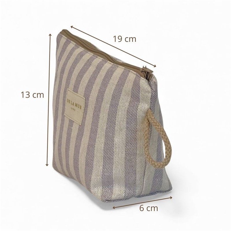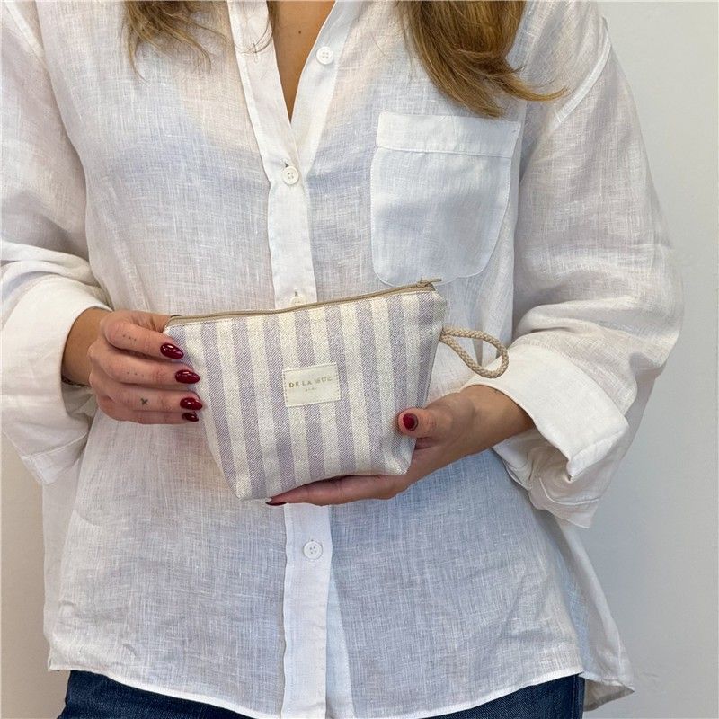 Neceser Práctico, Bonito y Multiusos! Si eres de las que necesitan tenerlo todo organizado (pero con estilo), este neceser te va a conquistar. Compacto y resistente, está confeccionado en tejido fino de half-panama de alta calidad, su textura aporta estructura y durabilidad. El estampado a RAYAS color LILA con toques de lurex combina con todo y añade ese toque alegre que transforma cualquier bolso. CREMALLERA SEGURA Y CORDÓN LATERAL. Incluye cremallera superior resistente para mantener tus cosas bien protegidas y un cordón lateral que facilita llevarlo en la mano o sacarlo cómodamente del bolso o maleta. Práctico y funcional, como nos gusta. MULTIUSOS PARA TODO. Este neceser es ideal para: Llevar tus imprescindibles a la playa, organizar pequeños productos de higiene, guardar maquillaje, mantener el bolso ordenado, transportar pequeños accesorios. FÁCIL DE LAVAR. Es fácil de limpiar, pensado para acompañarte a todas partes sin complicaciones. CONFECCIONADO EN ESPAÑA. Elaborado con telas nacionales y fabricación en España, apostando por la calidad, el cuidado en los detalles y la producción responsable.