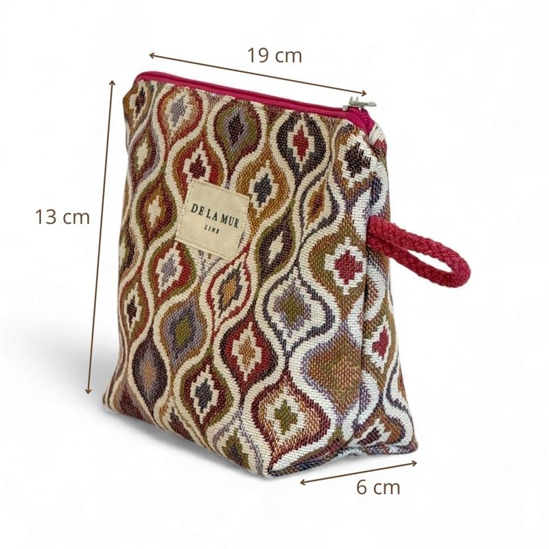 Neceser Práctico, Bonito y Multiusos! Si eres de las que necesitan tenerlo todo organizado (pero con estilo), este neceser te va a conquistar. Compacto y resistente, está confeccionado en tejido jacquard de alta calidad, su textura gruesa aporta estructura y durabilidad. El estampado GEOMÉTRICO en tonos ROSADOS y LILA combina con todo y añade ese toque alegre que transforma cualquier bolso. CREMALLERA SEGURA Y CORDÓN LATERAL. Incluye cremallera superior resistente para mantener tus cosas bien protegidas y un cordón lateral que facilita llevarlo en la mano o sacarlo cómodamente del bolso o maleta. Práctico y funcional, como nos gusta. MULTIUSOS PARA TODO. Este neceser es ideal para: Llevar tus imprescindibles a la playa, organizar pequeños productos de higiene, guardar maquillaje, mantener el bolso ordenado, transportar pequeños accesorios. FÁCIL DE LAVAR. Es fácil de limpiar, pensado para acompañarte a todas partes sin complicaciones. CONFECCIONADO EN ESPAÑA. Elaborado con telas nacionales y fabricación en España, apostando por la calidad, el cuidado en los detalles y la producción responsable.