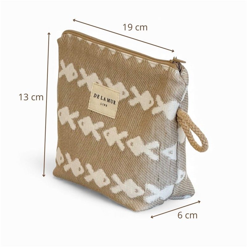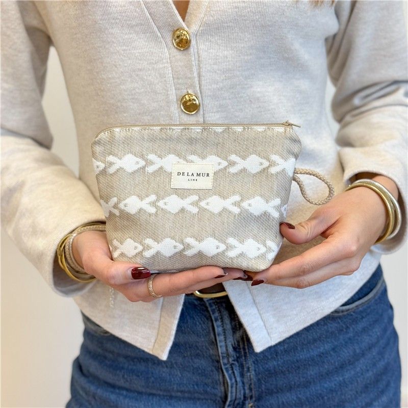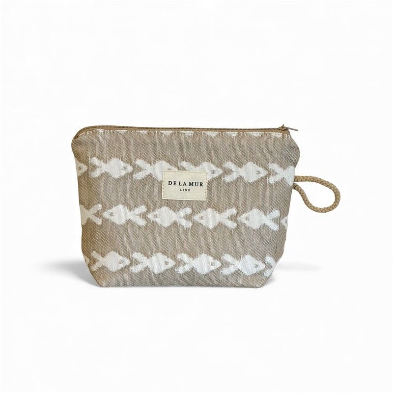 Neceser Práctico, Bonito y Multiusos! Si eres de las que necesitan tenerlo todo organizado (pero con estilo), este neceser te va a conquistar. Compacto y resistente, está confeccionado en tejido jacquard de alta calidad, su textura gruesa aporta estructura y durabilidad. El estampado de PECES en tono CRUDO sobre fondo BEIGE combina con todo y añade ese toque alegre que transforma cualquier bolso. CREMALLERA SEGURA Y CORDÓN LATERAL. Incluye cremallera superior resistente para mantener tus cosas bien protegidas y un cordón lateral que facilita llevarlo en la mano o sacarlo cómodamente del bolso o maleta. Práctico y funcional, como nos gusta. MULTIUSOS PARA TODO. Este neceser es ideal para: Llevar tus imprescindibles a la playa, organizar pequeños productos de higiene, guardar maquillaje, mantener el bolso ordenado, transportar pequeños accesorios. FÁCIL DE LAVAR. Es fácil de limpiar, pensado para acompañarte a todas partes sin complicaciones. CONFECCIONADO EN ESPAÑA. Elaborado con telas nacionales y fabricación en España, apostando por la calidad, el cuidado en los detalles y la producción responsable.
