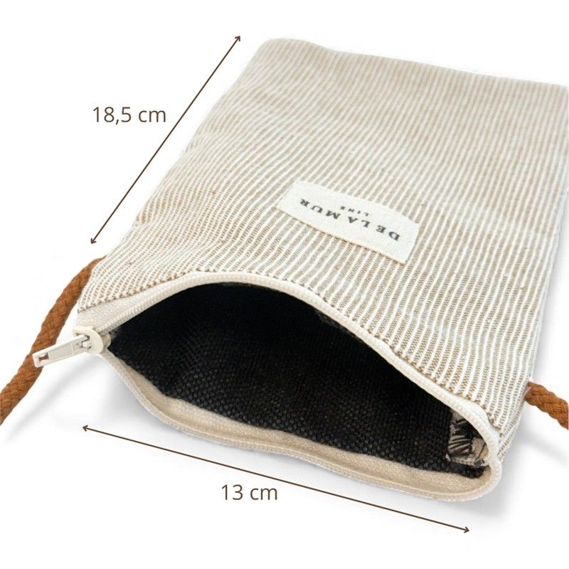 Ligero, práctico y siempre contigo. Este porta móvil de tela con asa larga es ese pequeño gran accesorio que te da libertad total. Cómodo, ligero y súper práctico, está pensado para llevar tu teléfono protegido… y tus manos libres. Combina diseño bonito y funcionalidad en un formato compacto ideal para el día a día. CREMALLERA SEGURA Y ASA LARGA. Asa larga para llevar cruzado o al hombro, comodidad total. Práctico y funcional, como nos gusta. TAMAÑO PERFECTO.Ideal para tu smartphone (incluso modelos grandes). Ligero y compacto, perfecto para paseos, viajes o eventos FÁCIL DE LAVAR. Es fácil de limpiar, pensado para acompañarte a todas partes sin complicaciones. CONFECCIONADO EN ESPAÑA. Elaborado con telas nacionales y fabricación en España, apostando por la calidad, el cuidado en los detalles y la producción responsable. El accesorio que no sabías que necesitabas. Minimalista, cómodo y funcional. Lo cuelgas, metes el móvil... y lista para salir.